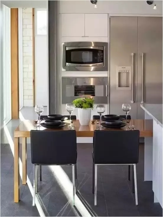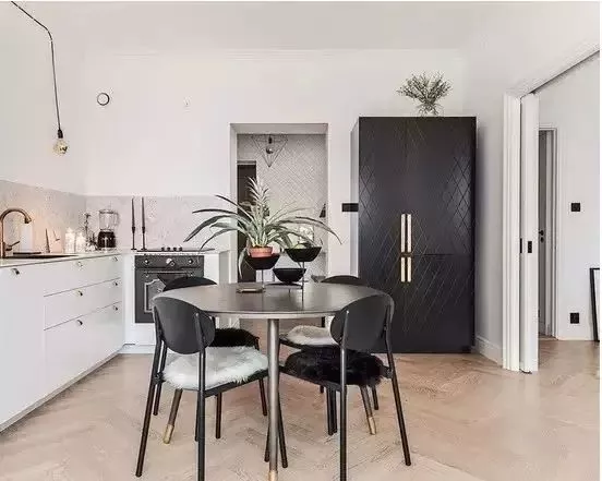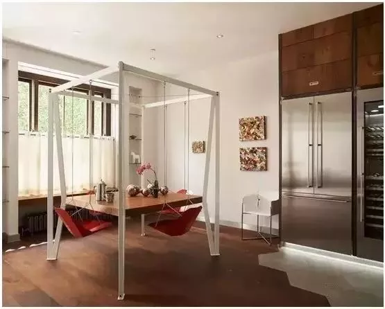 可以用推拉門的形式,將冰箱隱藏起來 ,整體設(shè)計(jì),讓冰箱顯得不那么突兀。