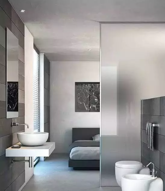 1、主臥內(nèi)的衛(wèi)生間可以在保持與房間風(fēng)格一致的前提下,按照個(gè)人的喜好用防水材料來裝修。
