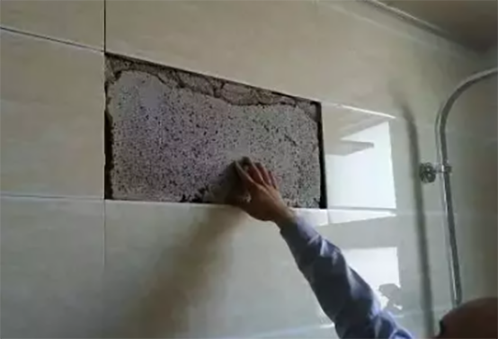 墻基鋪貼前沒(méi)有充分濕潤(rùn),造成水泥砂漿和磚體里的水被吸走,砂漿在凝固時(shí)間內(nèi)沒(méi)有足夠的濕度,無(wú)法充分粘結(jié)瓷磚。