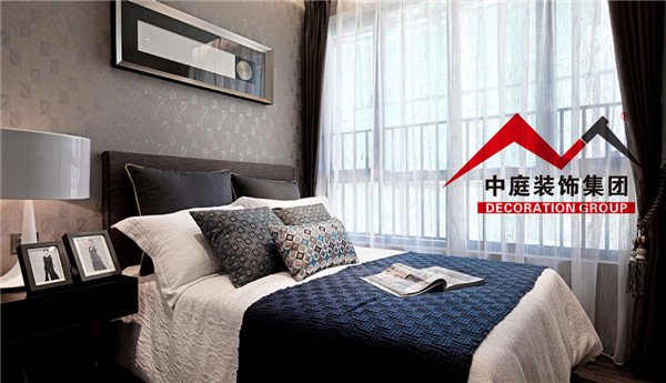 側(cè)臥床頭采用墻紙塑造墻面,經(jīng)濟(jì)又實(shí)惠。