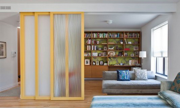 △將小戶型的客廳用滑門隔斷,這樣當(dāng)朋友來時(shí),就可以兼作客臥了。