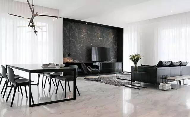 ▲淺灰白色的大理石光滑而有質(zhì)感,加之天花板也被刷白,整個空間看起來清爽極了。