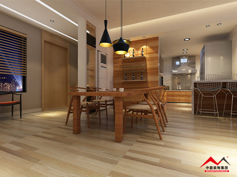▲關(guān)于餐廳地板現(xiàn)在一般家庭用瓷磚跟大理石的多一些,為了整體的協(xié)調(diào)也有用木地板,不推薦鋪地毯。