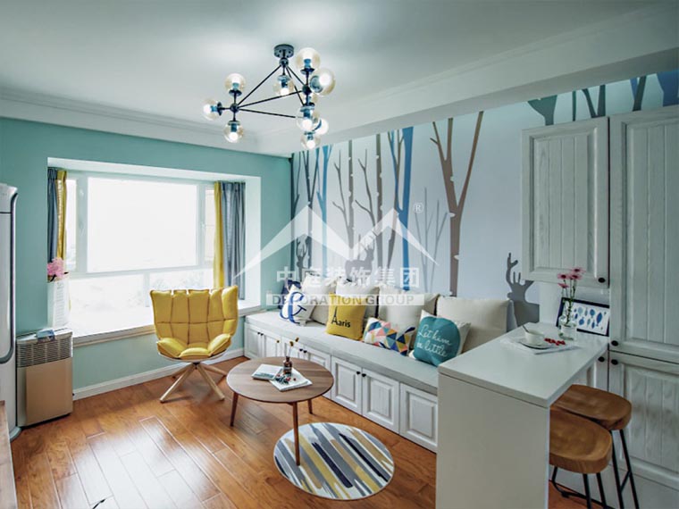 1、盡量使用清新一點(diǎn)的墻漆進(jìn)行補(bǔ)色,天藍(lán)、亮黃都是不錯(cuò)的選擇。