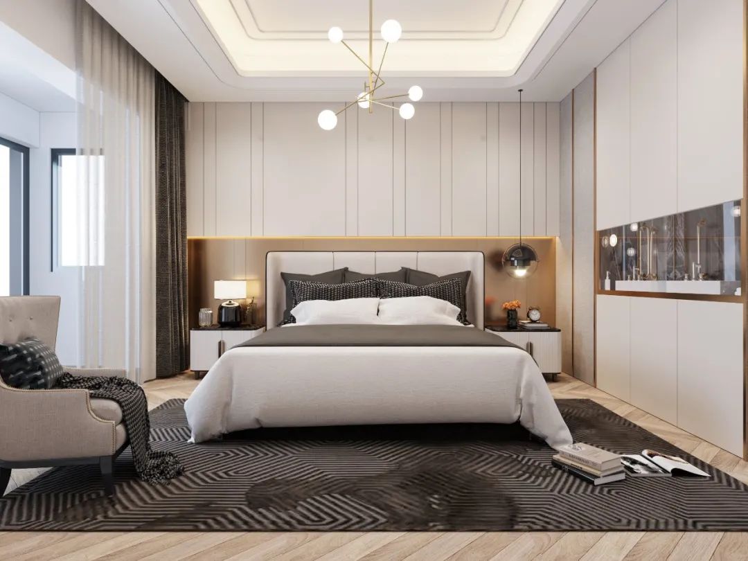 臥室的設(shè)計(jì)注重私密與舒適,這與其他空間在設(shè)計(jì)上有所區(qū)別。