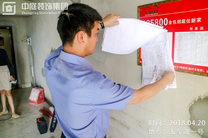 集團(tuán)總裁助理黃總助在仔細(xì)查驗(yàn)施工圖紙是否標(biāo)準(zhǔn)