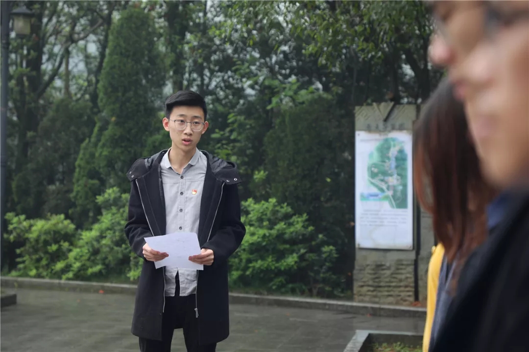▲ 黨支部代表陳夢浩發(fā)表學(xué)習(xí)先烈精神的倡議