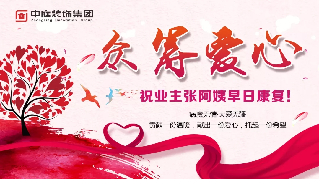 集團總裁丁胡先生向全體員工號召,為張阿姨獻出一份愛心。捐款不分多少,貴在有份愛心,只要我們人人都能付出一點愛、將小愛匯聚成大愛,大愛必定驅趕病魔,大愛定能早日治愈張阿姨的疾病。