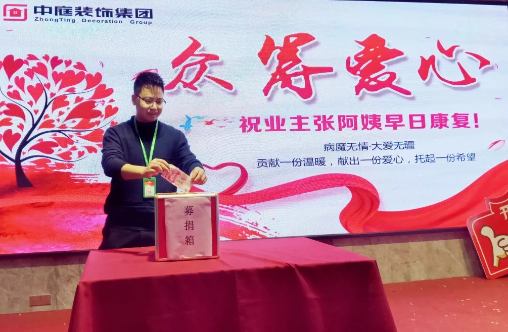 中庭裝飾集團黨支部書記張立安向全體員工發(fā)起愛心捐款倡議
