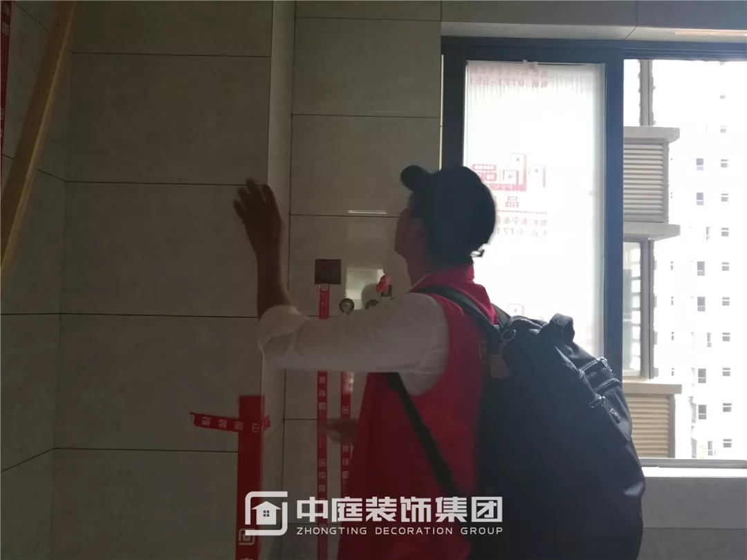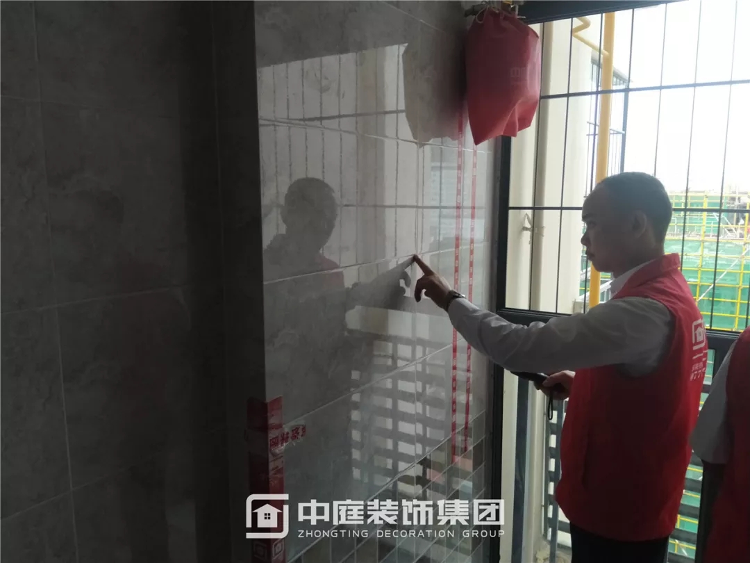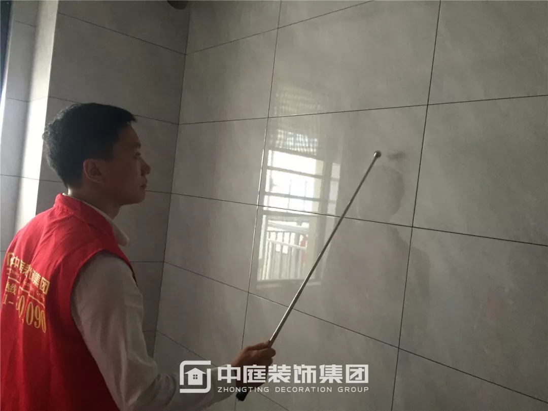 檢查瓷磚鋪貼是否平整干凈,有無錯(cuò)貼漏貼