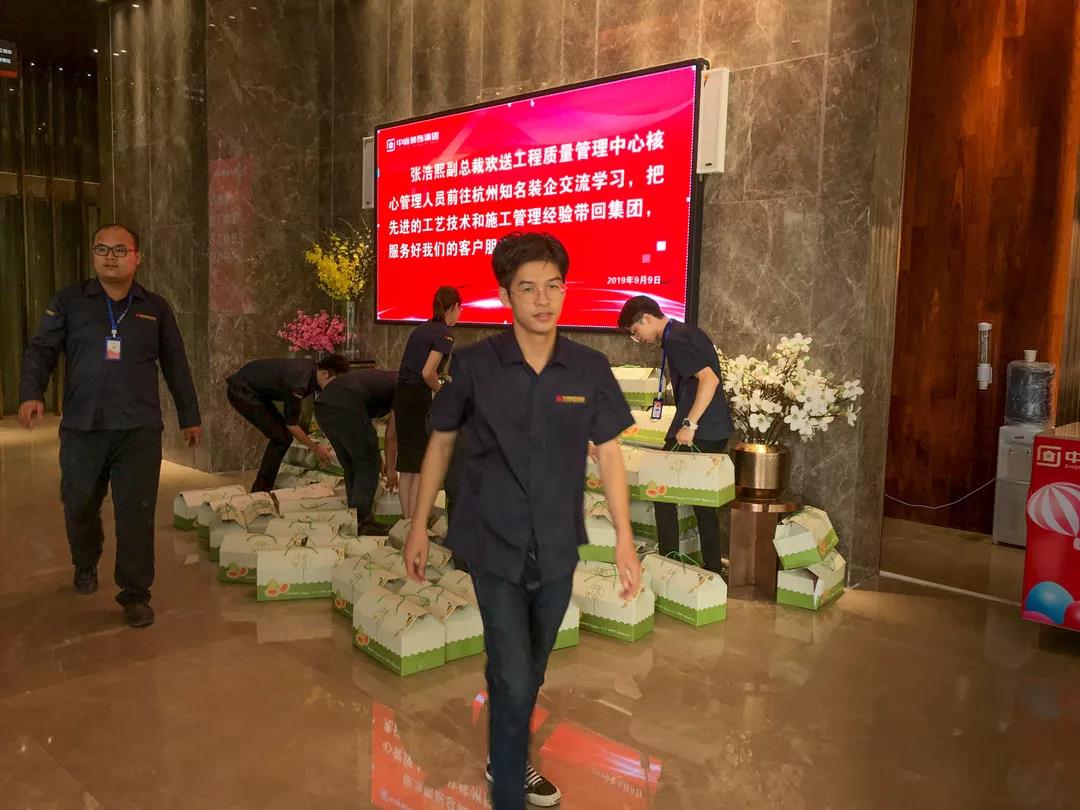 中午時候幕后工作的家人就已經(jīng)中秋禮盒擺放在一樓大廳。