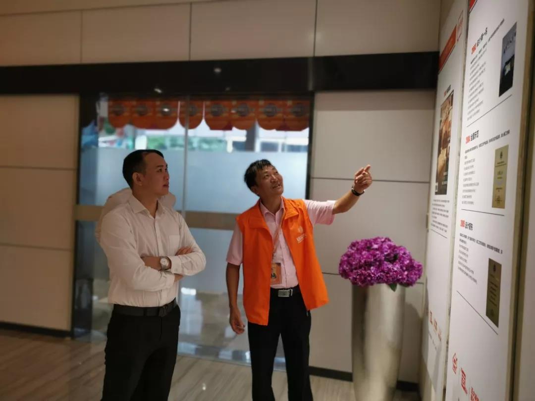▲大區(qū)經(jīng)理應(yīng)立強(qiáng)應(yīng)總向吳總一行人解讀公司文化墻