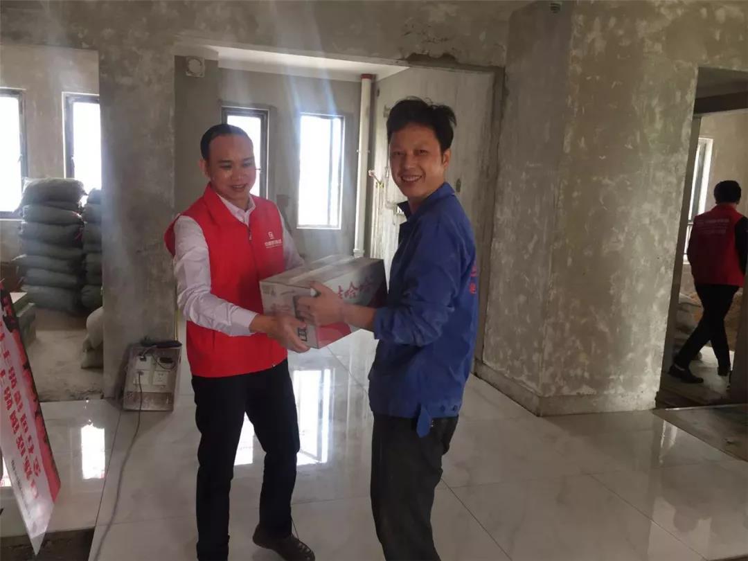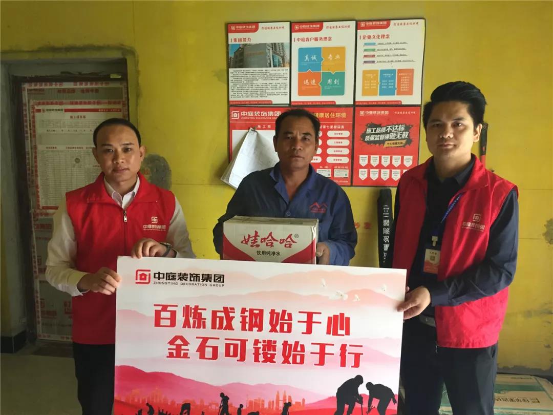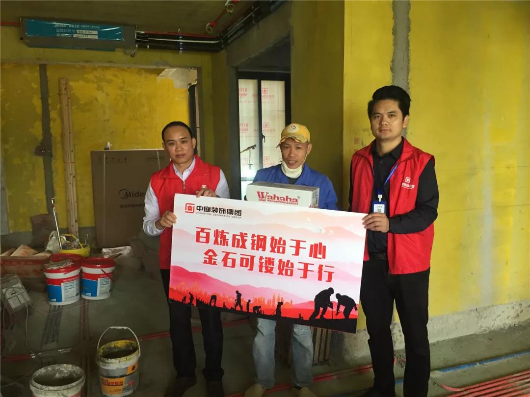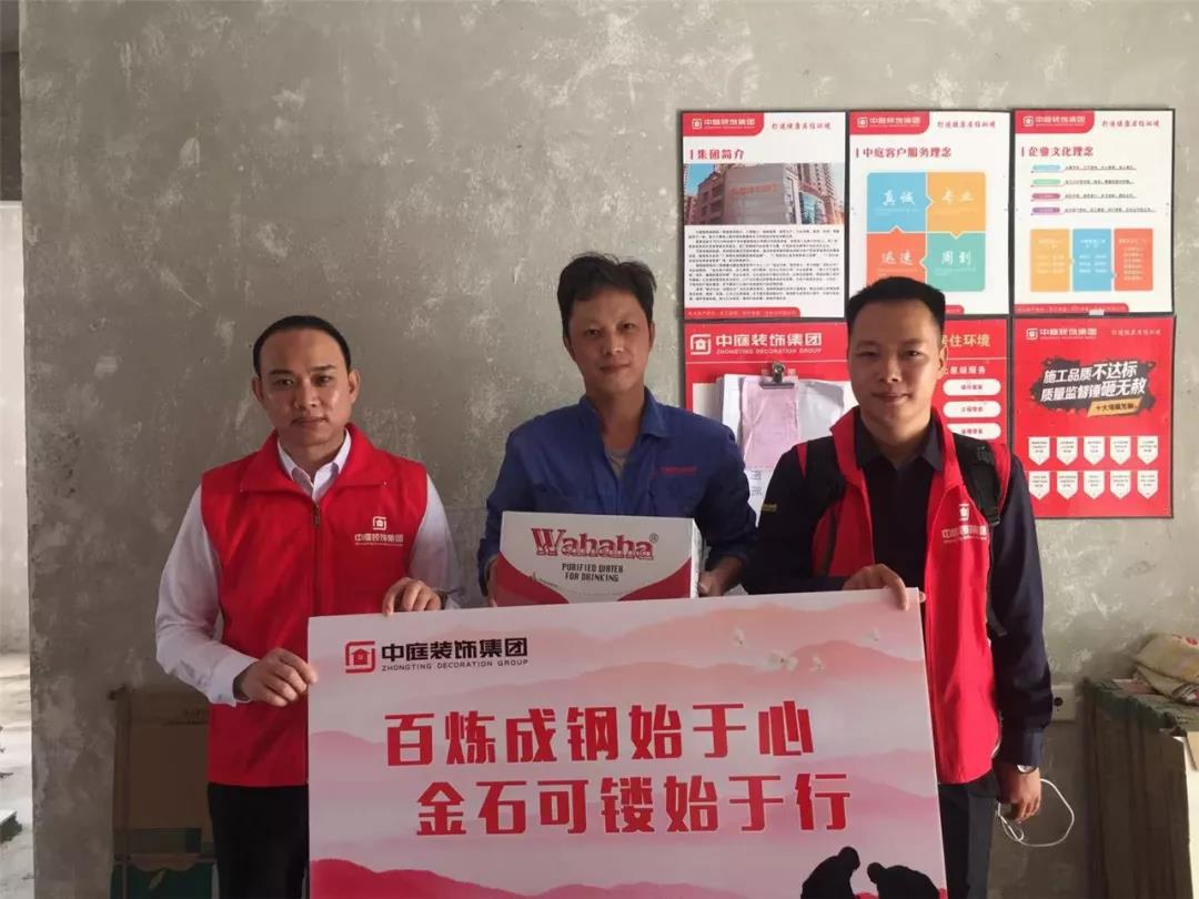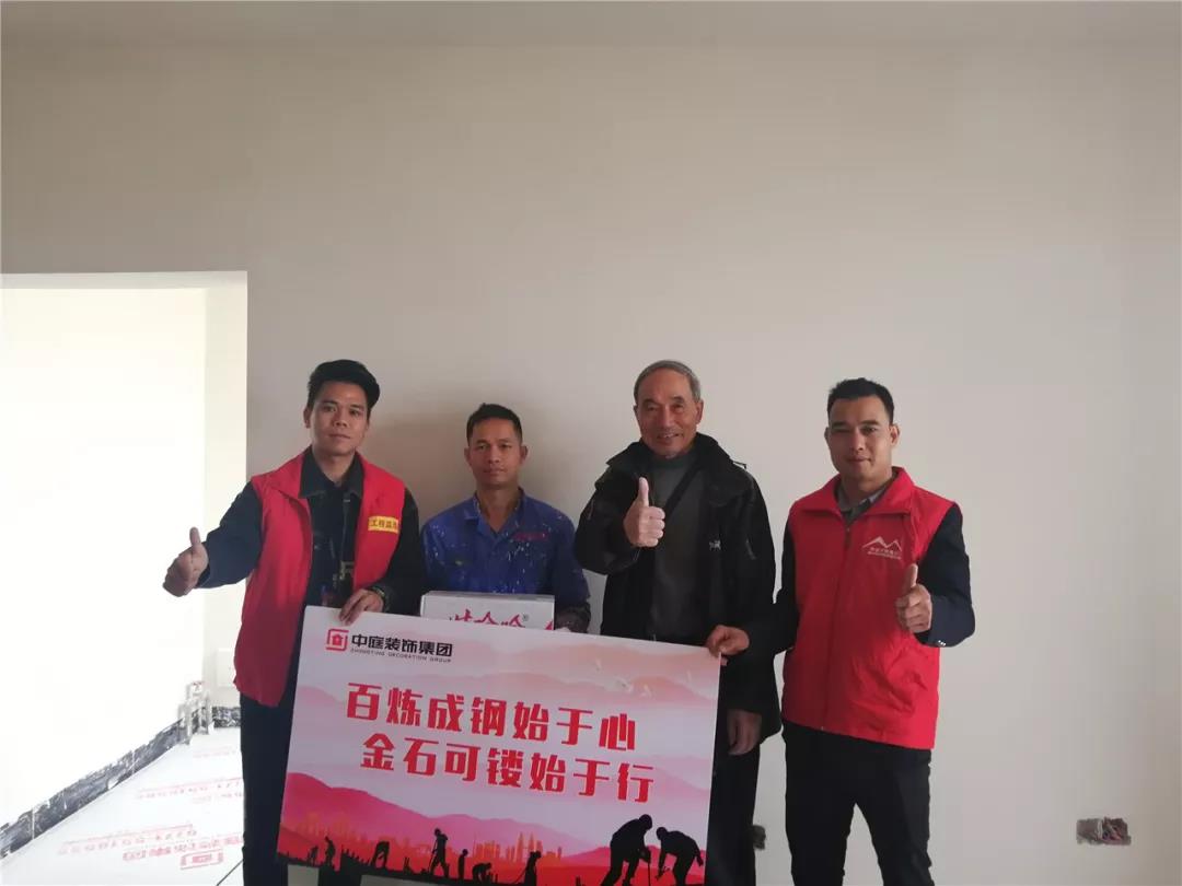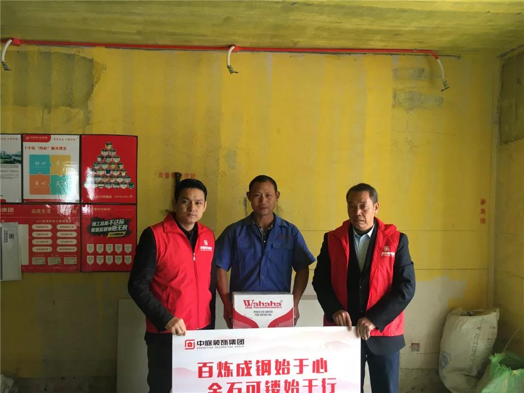 丁胡總裁與業(yè)主、施工師傅交流膩子施工情況;交流過程中明顯可以看出師傅和業(yè)主朋友的關(guān)系非常融洽,巡檢現(xiàn)場其樂融融。