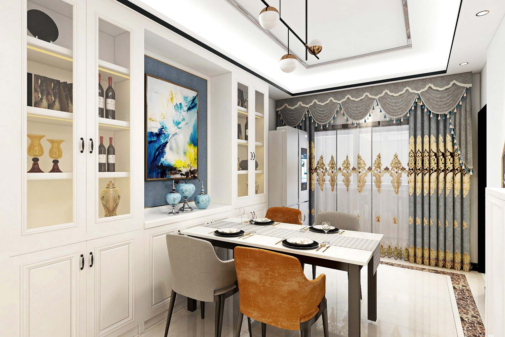 此案例戶型為4房2廳2衛(wèi),總面積120㎡,屬于現(xiàn)代輕奢風(fēng)格,整體以灰白色調(diào)為主,以明艷色彩點(diǎn)綴為輔,打造了一個(gè)簡約大氣的舒適居住空間。此外,空間以金屬元素作為點(diǎn)綴,用色彩的純度傳遞細(xì)膩的質(zhì)感。造型簡潔,線條流暢的家具組合搭配,營造出穩(wěn)定、協(xié)調(diào)、溫馨的空間感受,滿足現(xiàn)代家庭的輕奢需求。設(shè)計(jì)師用一些精致裝飾的小物品來彰顯主人自在有格調(diào)生活方式,凸顯其潮流精神與靈魂修養(yǎng)。