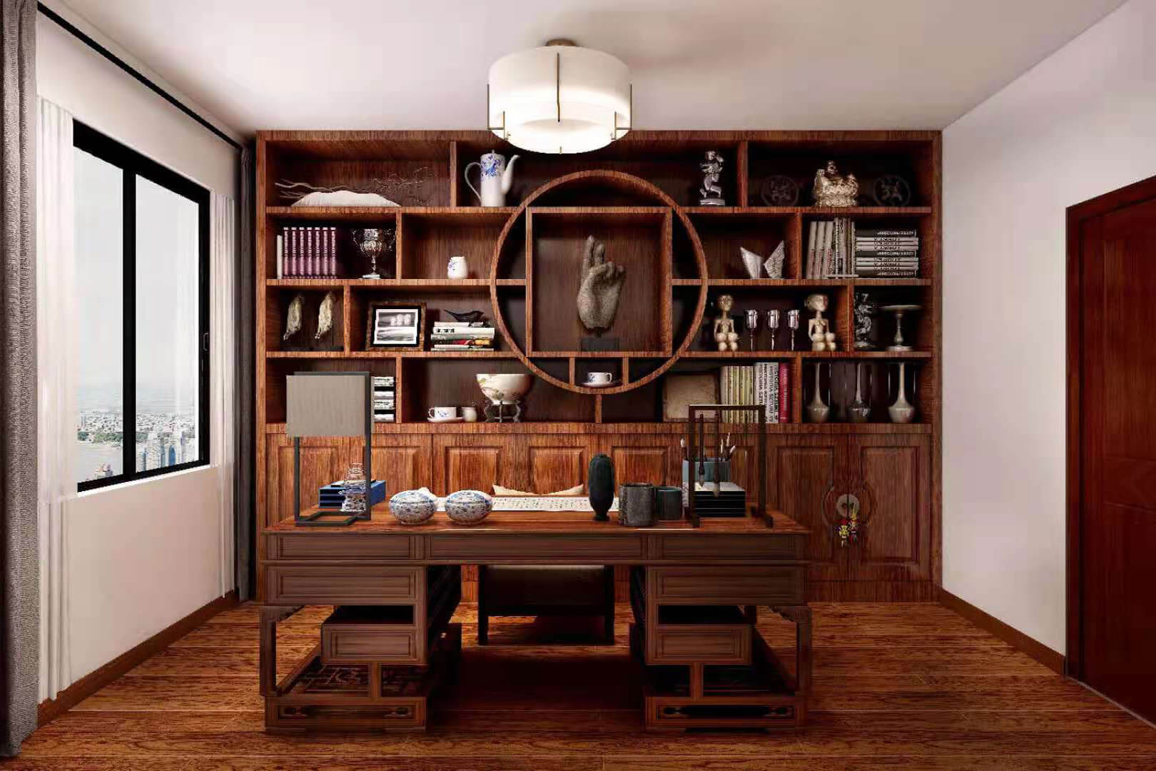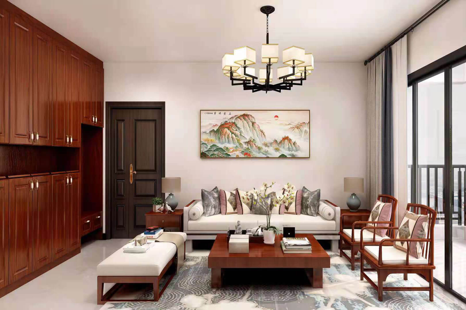 瀏覽量:552房子整體家具以紅木為主。客廳采用白色地磚和留墻面與家具搭配讓顏色看起來更為簡潔,不做裝飾的吊頂讓整體的空間看起來更寬大。房間采用紅木地板與房間家具色彩呼應,墻面留白用水墨畫裝飾讓房間裝飾更豐富,也讓色彩更多了層次感。