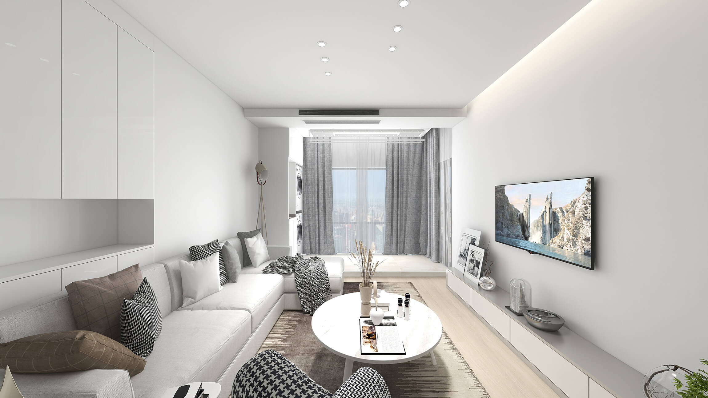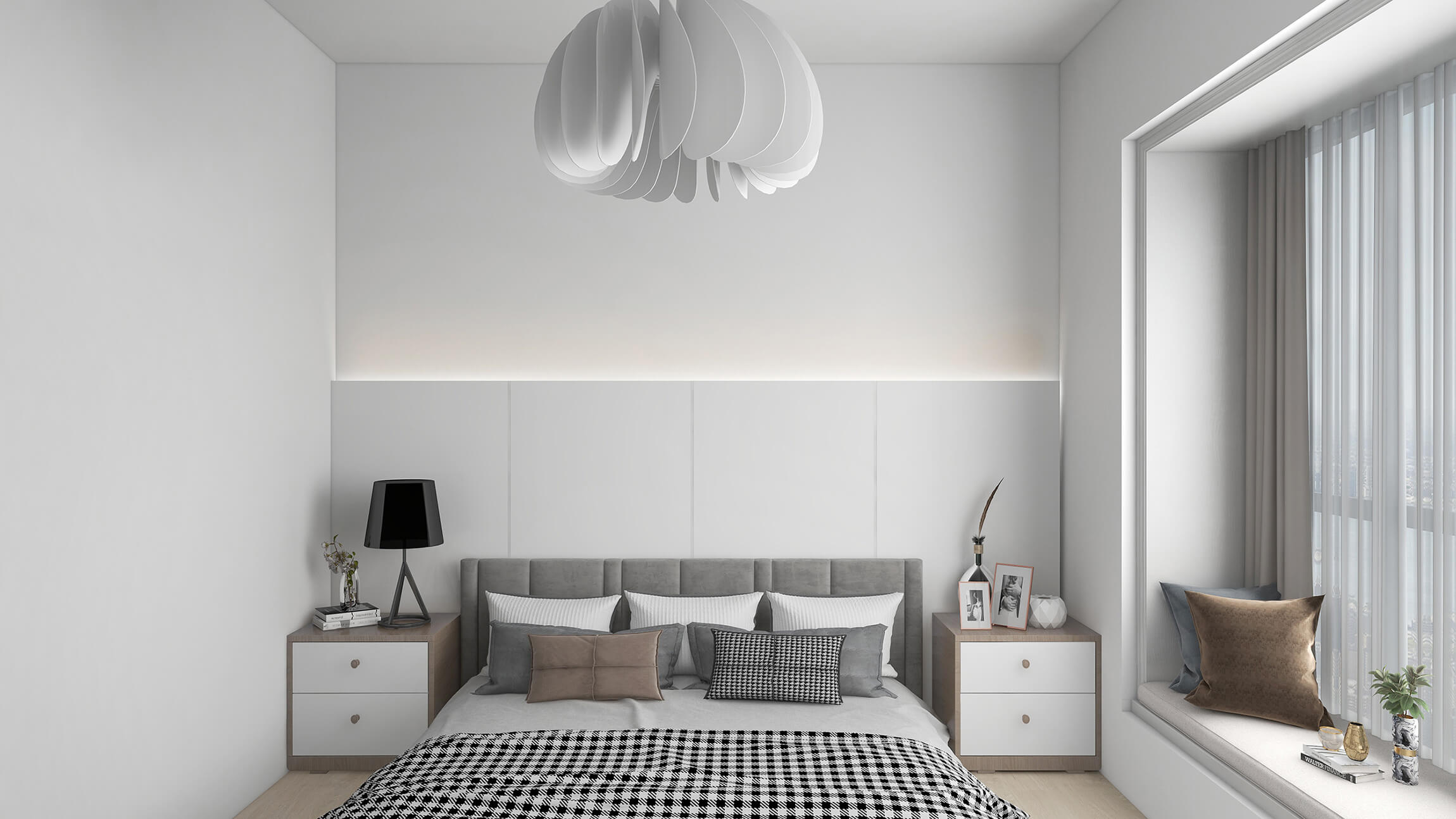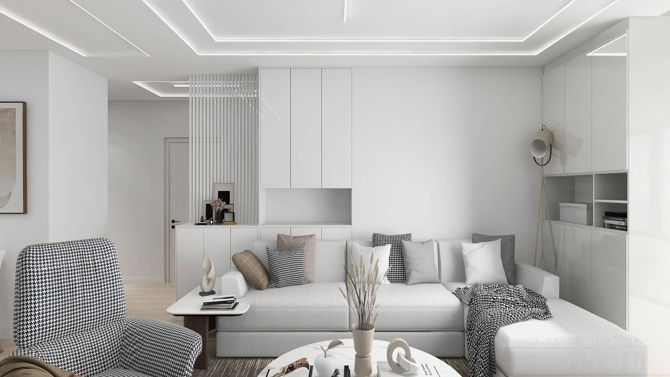 本案戶(hù)型為:2房2廳1衛(wèi),總面積69㎡。本案為現(xiàn)代簡(jiǎn)約風(fēng),簡(jiǎn)單明了、舒適時(shí)尚的空間,沉穩(wěn)內(nèi)斂的色調(diào),不失高雅、大氣之感的同時(shí),塑造出獨(dú)有質(zhì)感的現(xiàn)代空間。