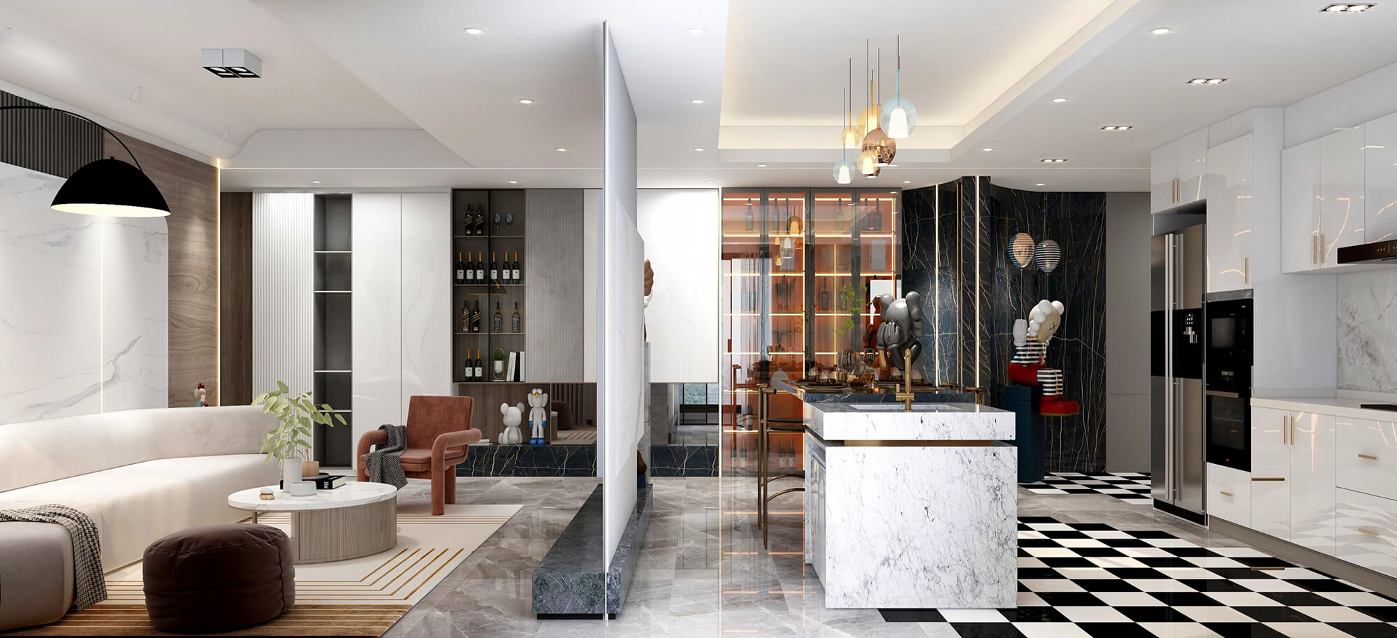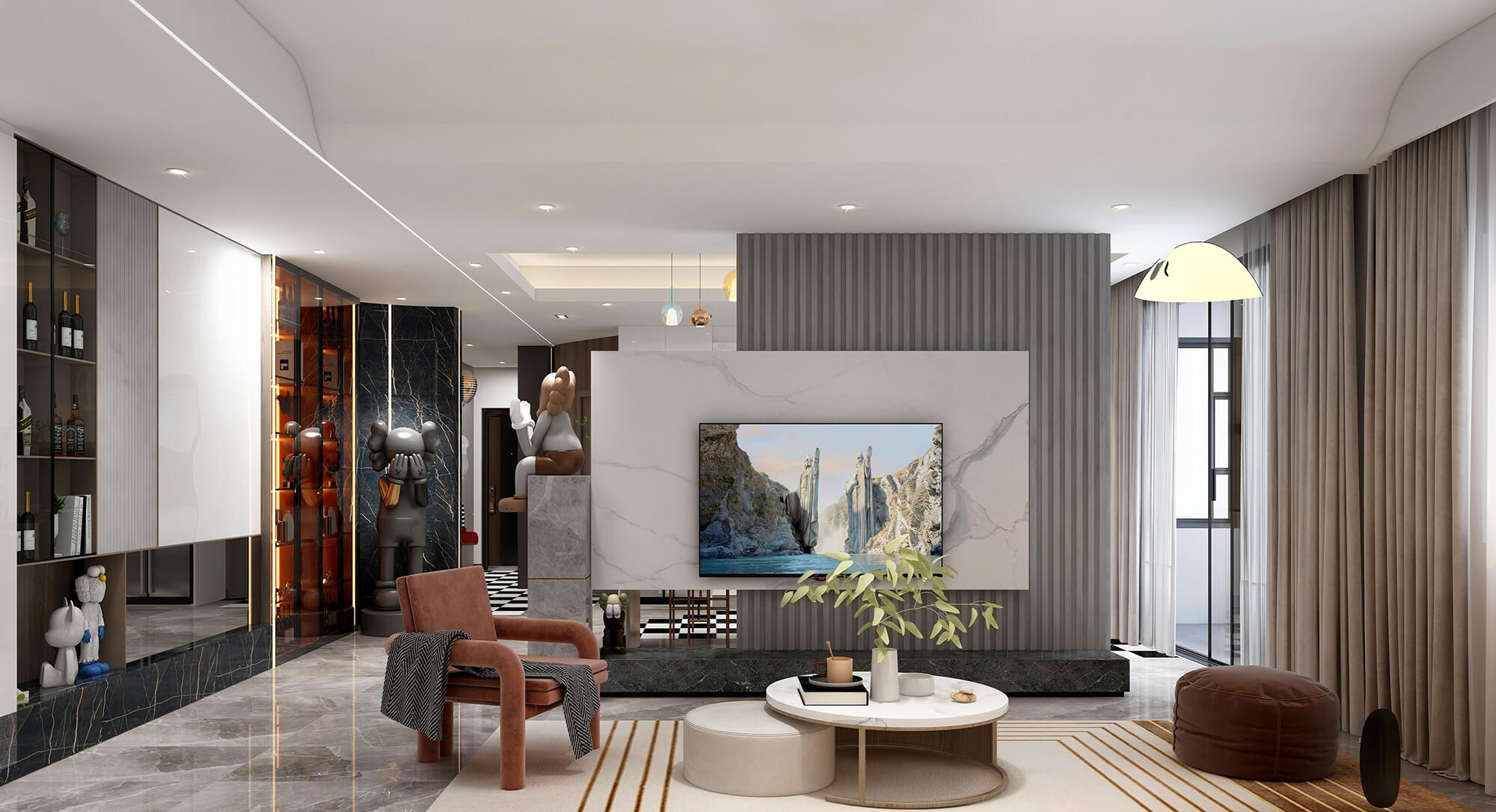 本案戶型為:3房2廳2衛(wèi),總面積113㎡。本案設(shè)計(jì)師通過(guò)簡(jiǎn)練、流暢而清晰的動(dòng)線規(guī)劃,在空間之外賦予更多的品位與內(nèi)涵,提升空間品質(zhì)的同時(shí),創(chuàng)造出具有極高鑒賞性的藝術(shù)感染力。