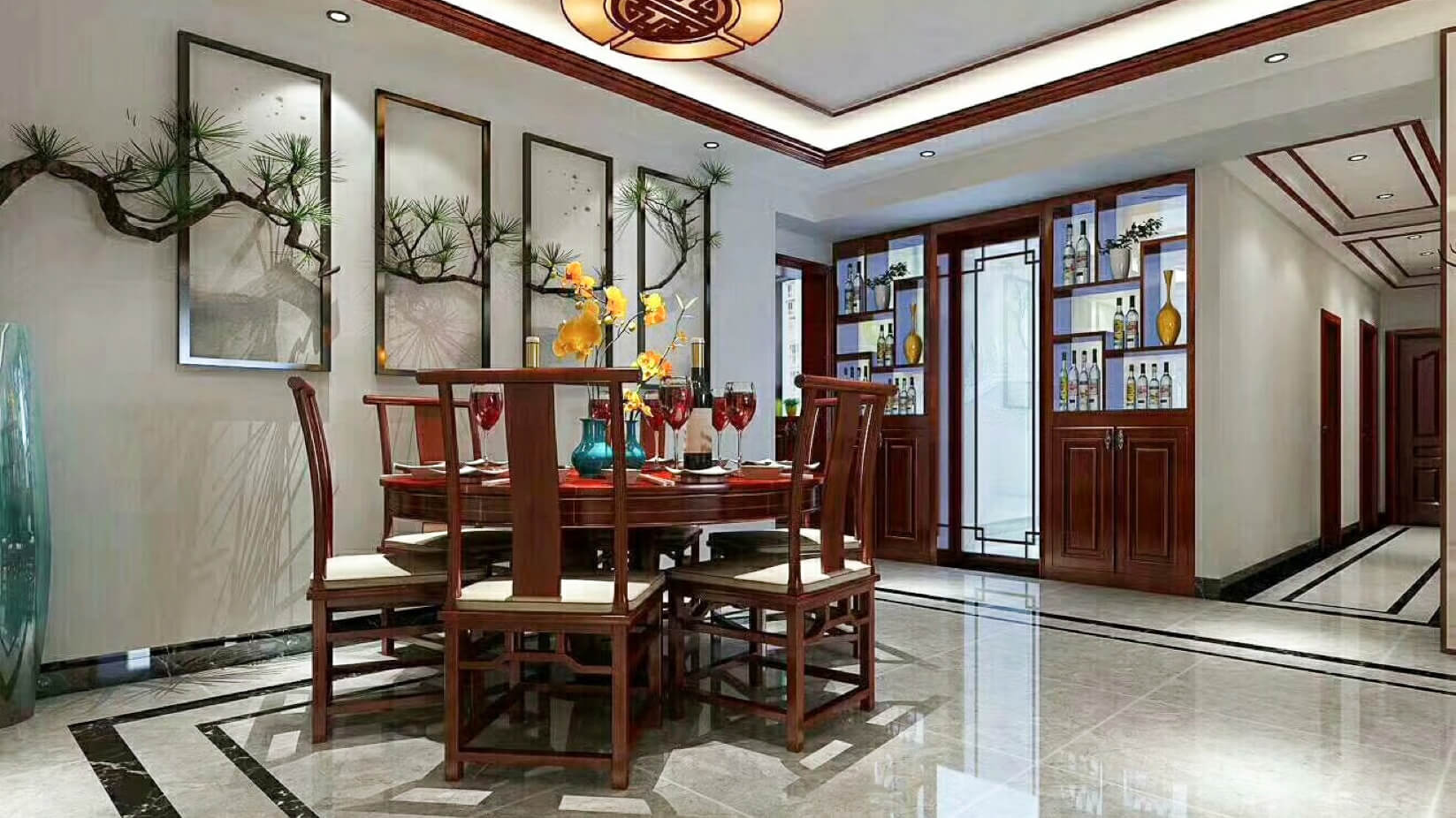 瀏覽量:983本方案是一家四口設計,業(yè)主對中式風格情有獨鐘,所以都是圍繞著中式元素來設計。家里邊經(jīng)常會客,入戶玄關(guān)以及客餐廳的設計要求相對要大氣,客餐廳吊頂采用連貫式的,設計了一級邊吊和實木木線條,與地面的波導線形成相呼應的設計。