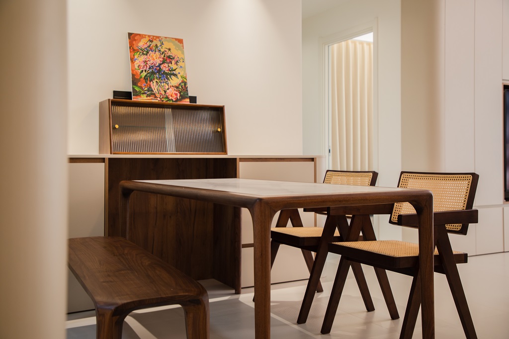 85后獨享的浪漫之所,以業(yè)主鐘愛的現(xiàn)代奶油色調(diào)為基礎,融入中古韻味的家具,呈現(xiàn)出克制又一覽無余的藝術美學,成就一處充滿藝術美感的永恒之家。