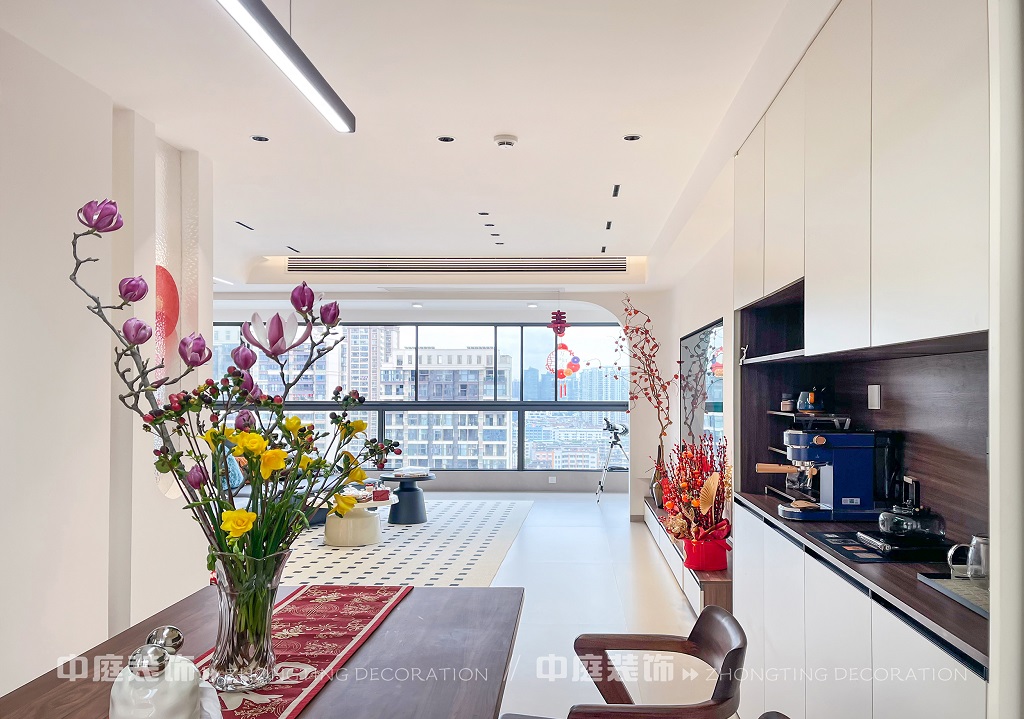 將開闊的落地窗化作風(fēng)雨的畫框,讓清晨的陽光與夜晚的燈火在此交融。這套房子設(shè)計(jì)理念上,立足居住者對(duì)舒適、品質(zhì)與情感共鳴的需求,將都市的快節(jié)奏與家的溫馨慢生活相融合,每一處細(xì)節(jié)都在詮釋:現(xiàn)代簡(jiǎn)約不只是風(fēng)格,更是對(duì)生活質(zhì)感與情感歸屬的雙重營(yíng)造。