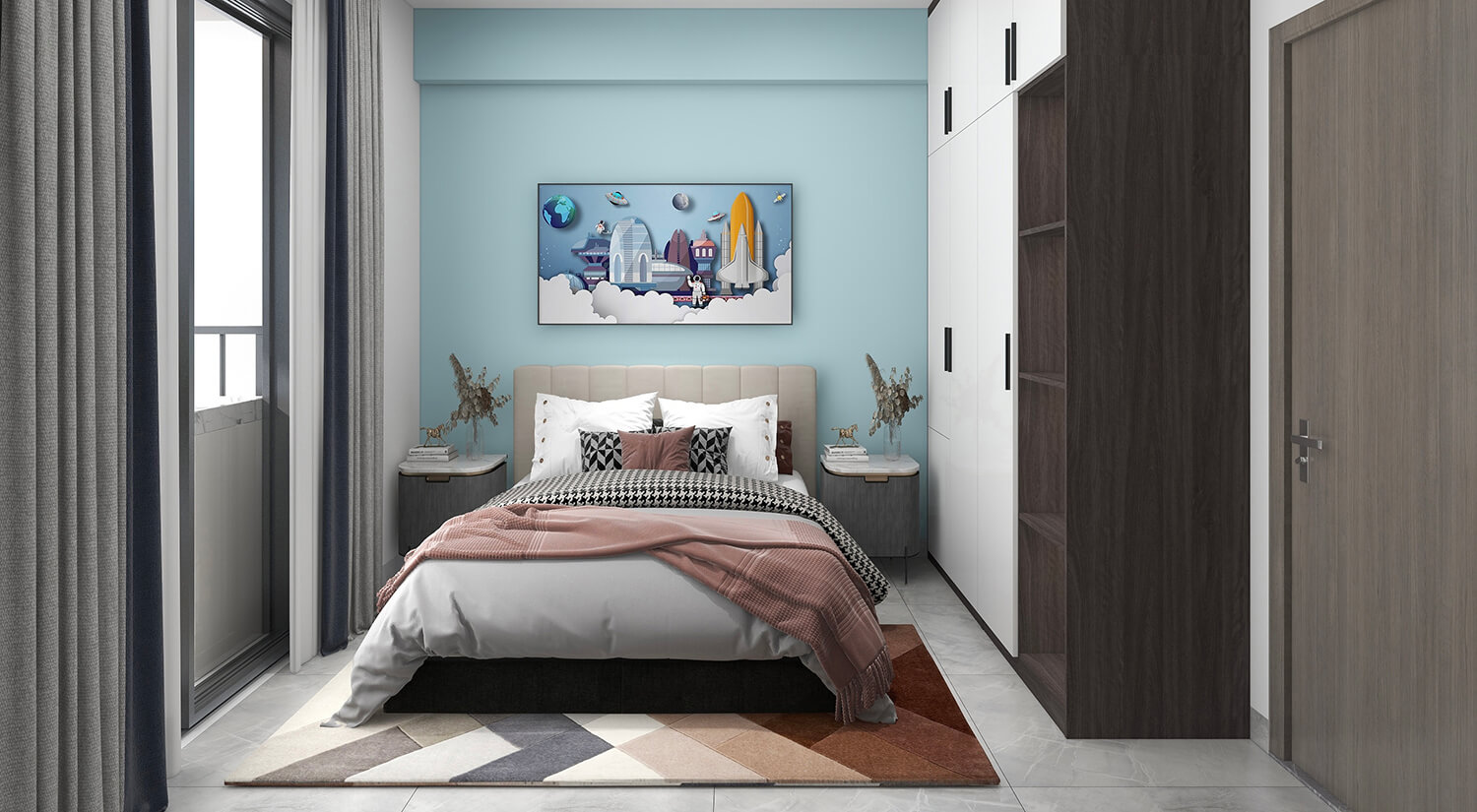 本案例戶型為:3房1廳1衛(wèi),總面積99㎡。在房間的布局上,現(xiàn)代簡約風(fēng)格強(qiáng)調(diào)實(shí)用性和舒適感。布局簡潔明了,避免過多的家具和裝飾品,力求創(chuàng)造出整潔、明亮和開放的空間感。