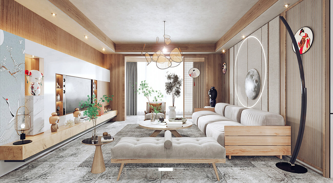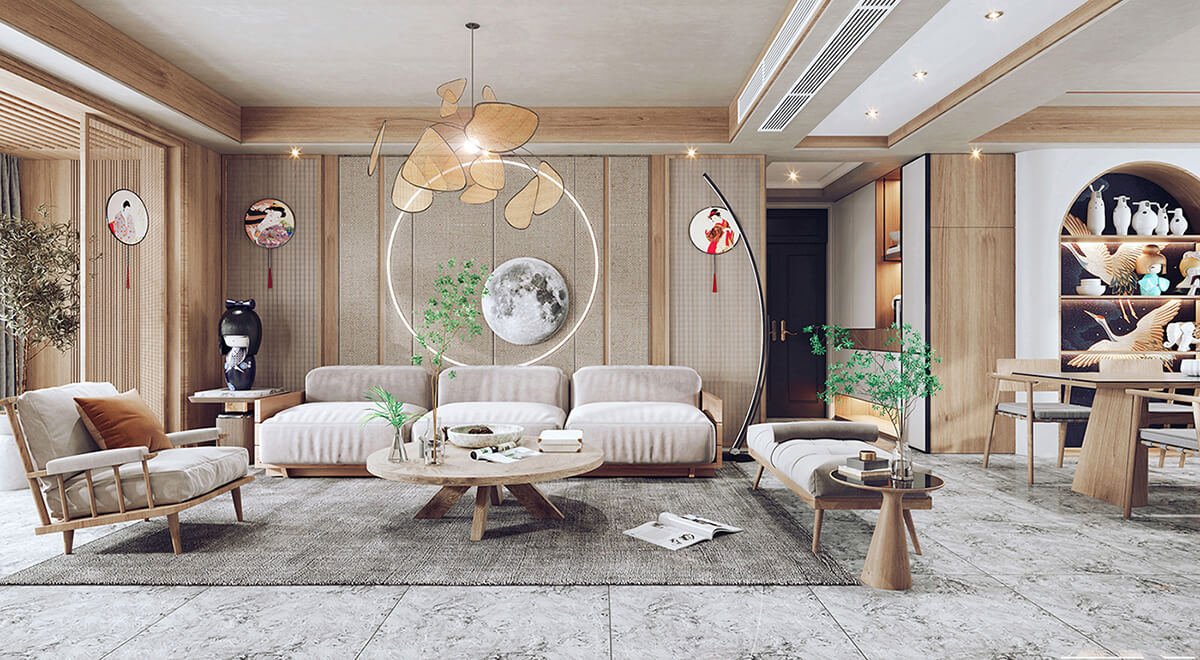客廳通常被視為日式室內(nèi)設(shè)計的重要區(qū)域。通常采用開放式布局,使客廳與餐廳、廚房和走廊相連。使空間富有靈活性。
