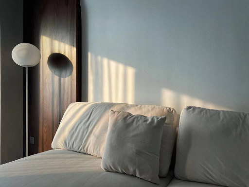 淺灰色與原木色的基調(diào)在空間中暈染開(kāi)來(lái),營(yíng)造出質(zhì)樸舒適的休憩空間。